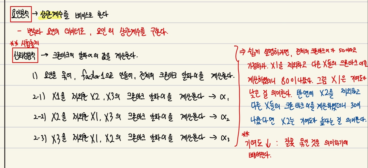 - 요인분석은 변수(요인, Factor)들을 분류하여 유사한 변수들끼리 묶는다. 10개 변수로 분석할 일을 3개의 변수로 단순화할 수 있다.
