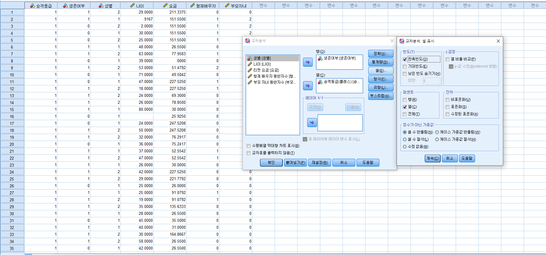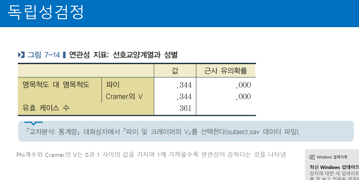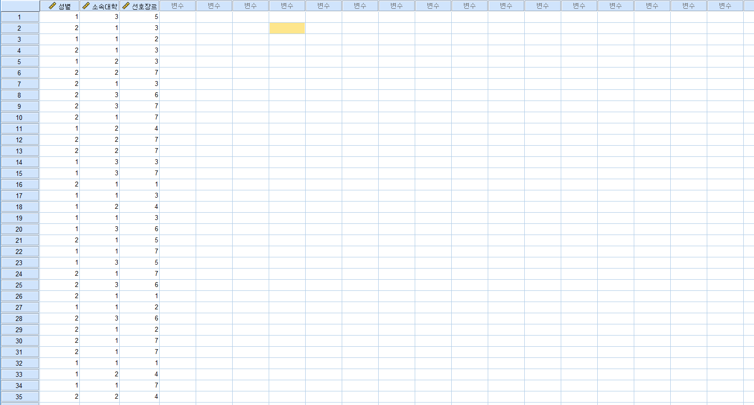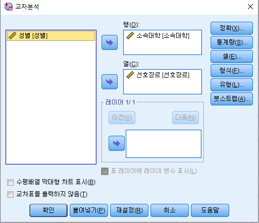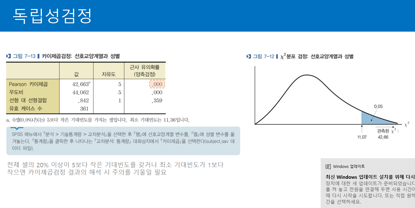 - 교차표에 두 변수를 조합하였을 때, 발생할 가능성이 없거나 희박한 경우가 나타난다면 데이터에 오류가 있을 수도 있음을 의미한다.