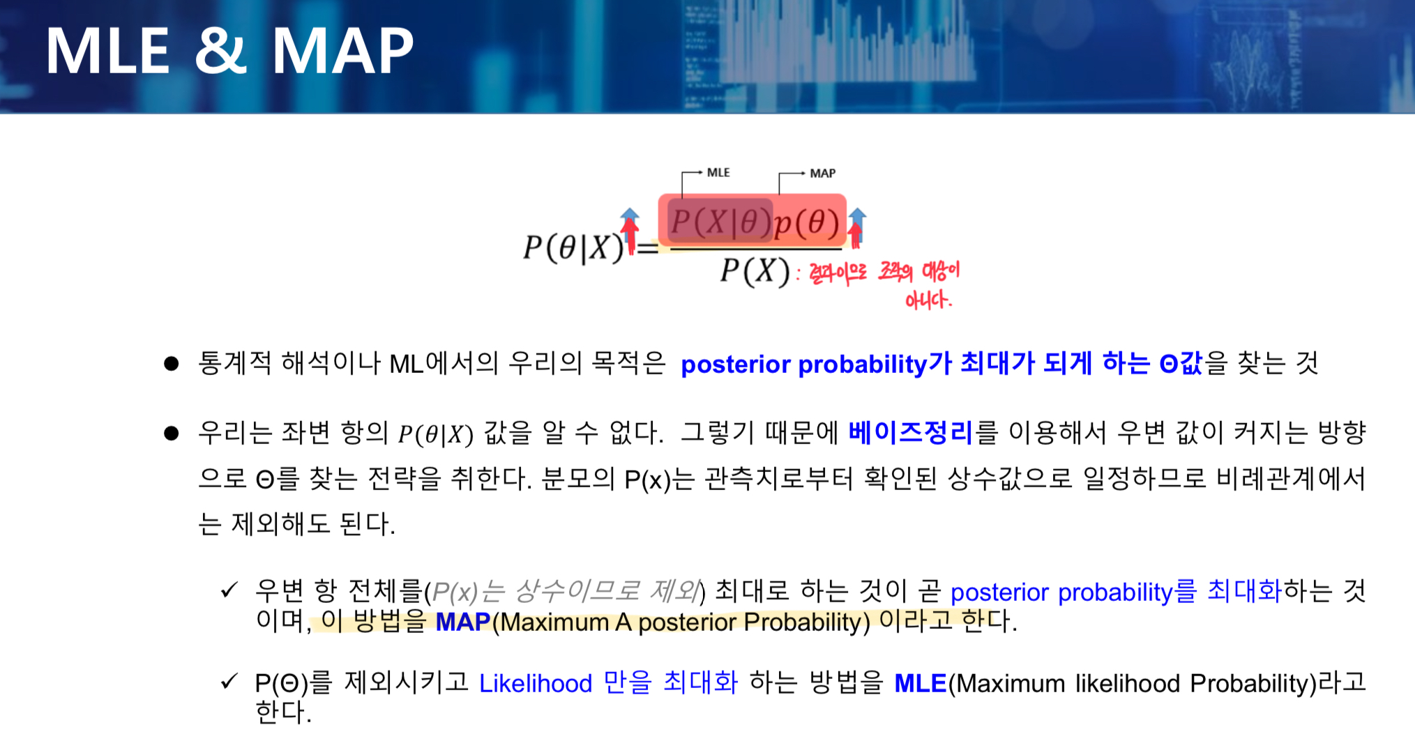 - P(X | Q) * P(Q) 전체를 최대로 하는 것이 곧 사후확률을 최대화하는 것이며, 이 방법을 MAP이라고 한다.