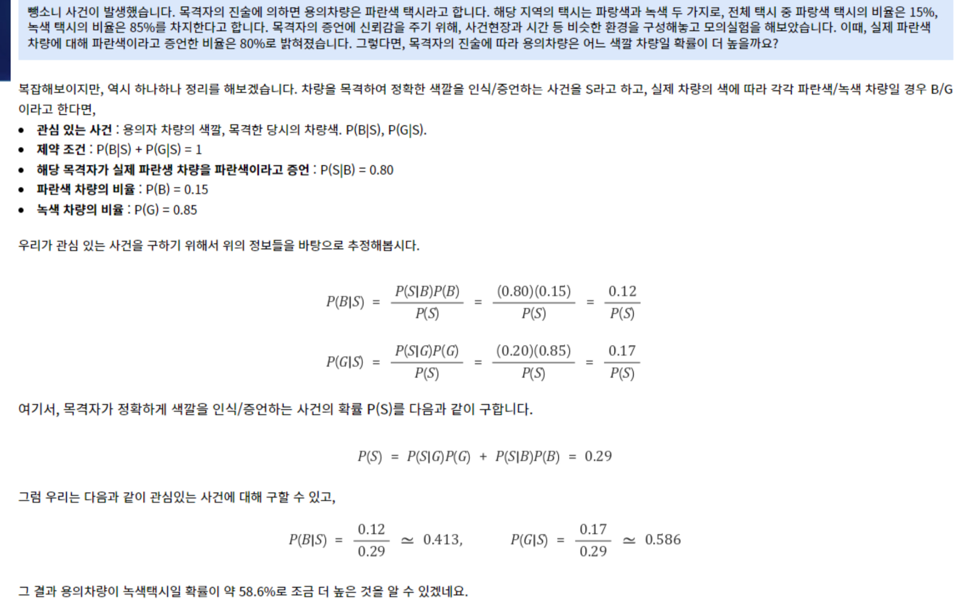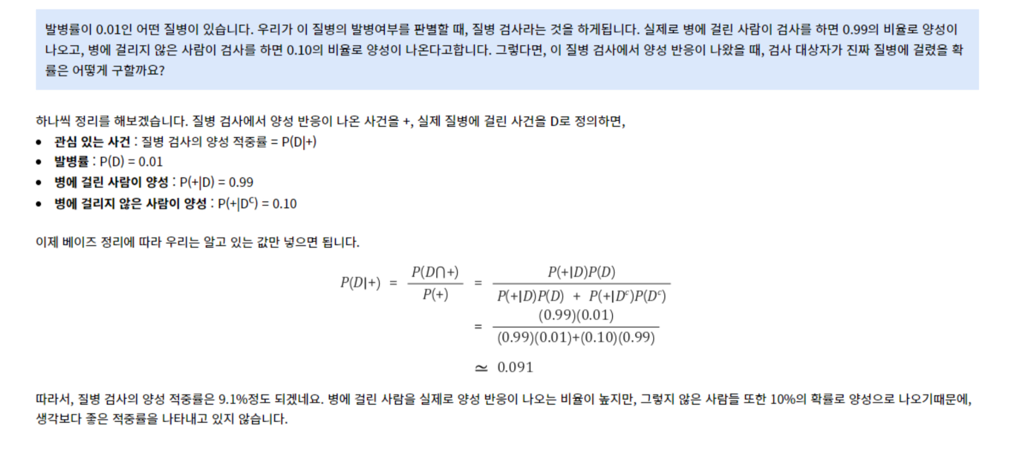 - 이전의 확률에 새로운 정보를 반영하여 더 정확한 결과를 얻게 되는 것이다.