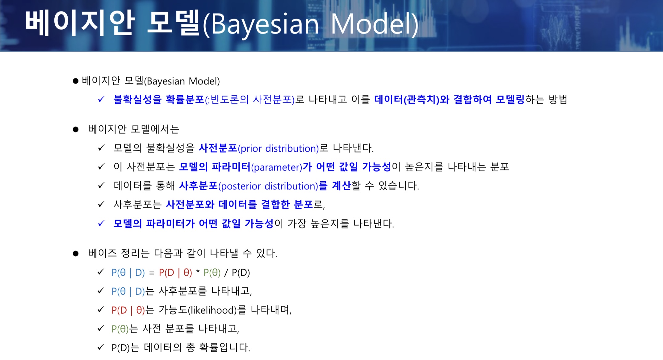 - 불확실성을 확률분포로 나타내고, 이를 데이터와 결합하여 모델링하는 방법