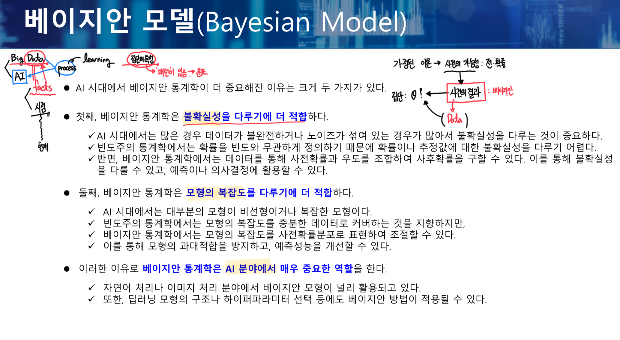 - 둘째로, 베이지안 통계학은 모형의 복잡도를 다루기에 더 적합하다.