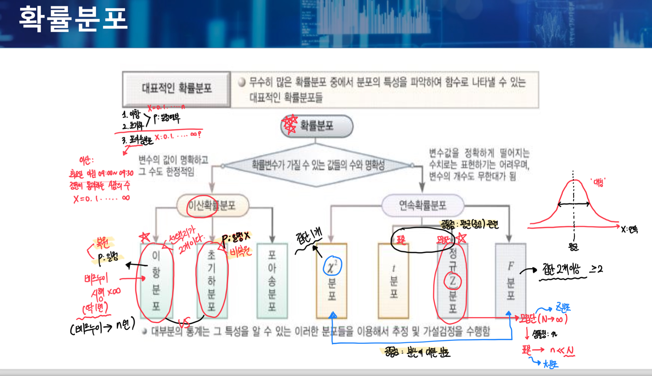[기말고사 시험 : 6장 ~ 8장, 유인물, 확률분포, 확률변수, 확률밀도함수, 각 분포들, 기댓값 및 분산, 표준편차 부분 확인]
