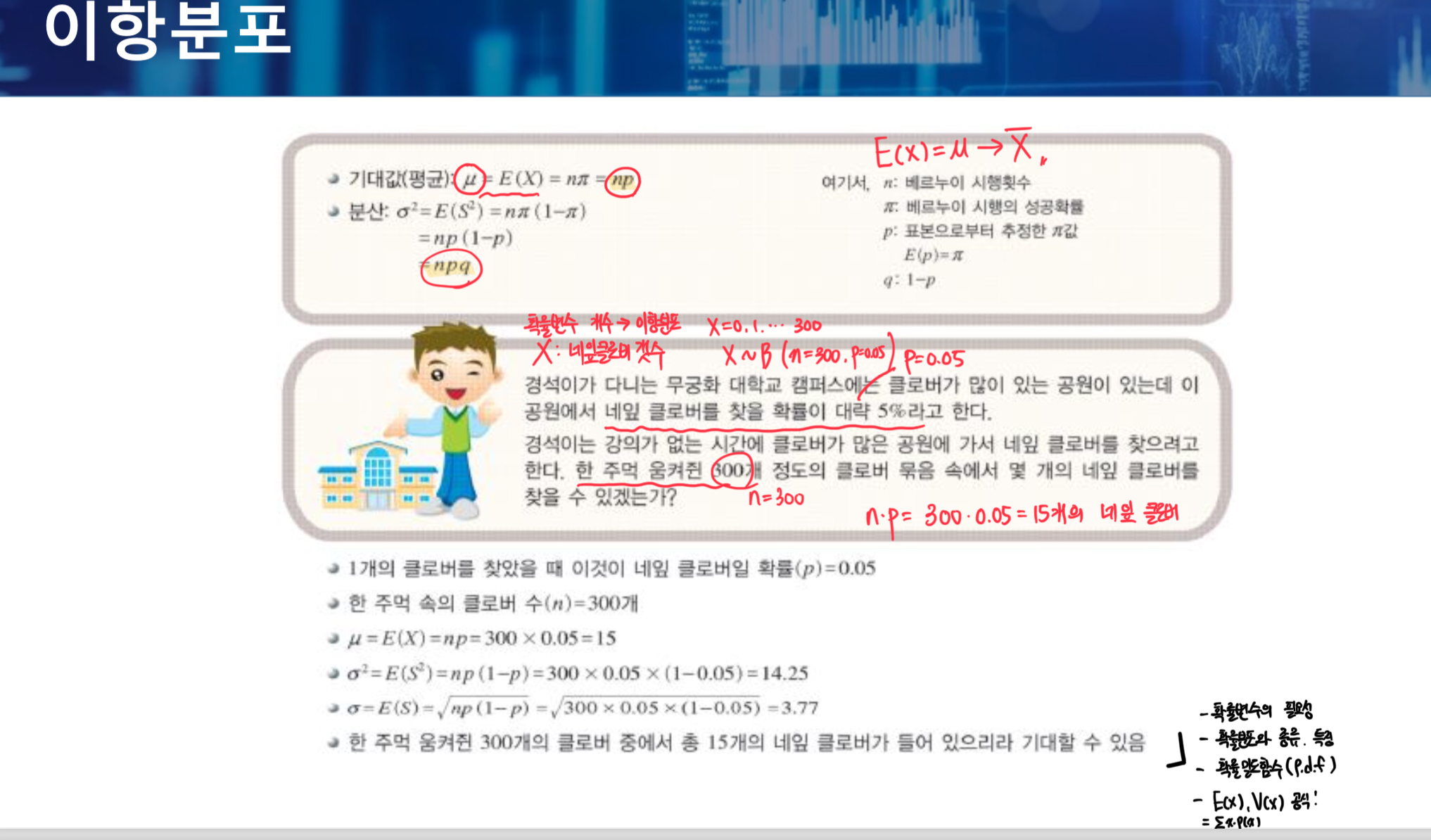 - 기대값 = n * p = 시도횟수 * 성공확률