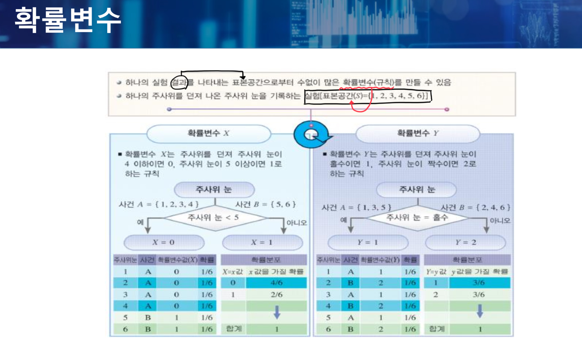 - 확률변수란, 표본공간상의 모든 표본점들에 수치를 부여하는 규칙이다.