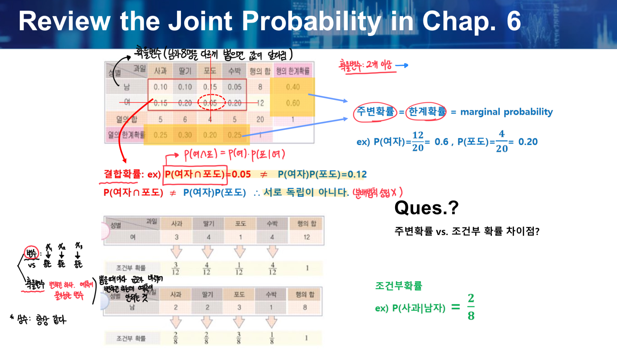 ※ 뒤에서 다루겠지만, 주변확률 (한계확률)의 개념을 잘 알고 넘어가자.