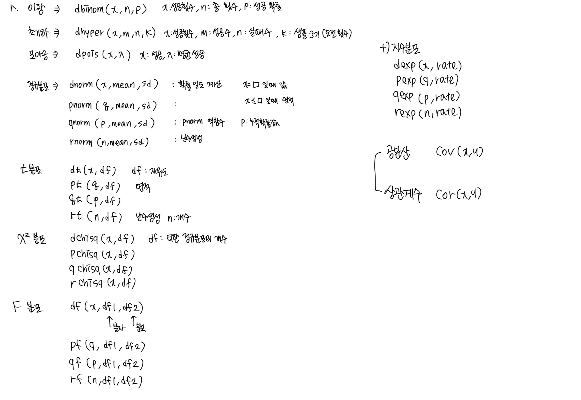 - 지수분포 : 한 사건이 발생한 후에 다음 사건이 발생할 때까지의 시간이나 면적을 변수값으로 하는 확률변수의 분포