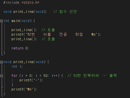 | 매개변수 X, 반환형 X | 선언 | void print_title( ); |