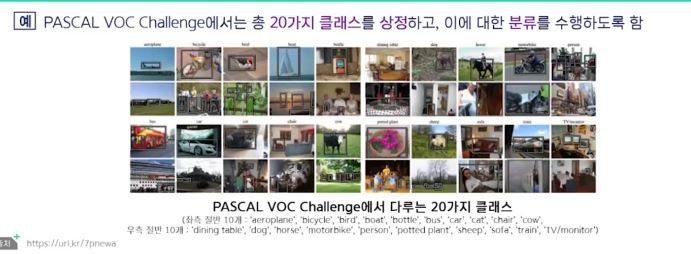 초창기 이미지 인식 대회 중 가장 대표적인 것이 PASCAL VOC Challenge (Visual Object Classes) 이다.
