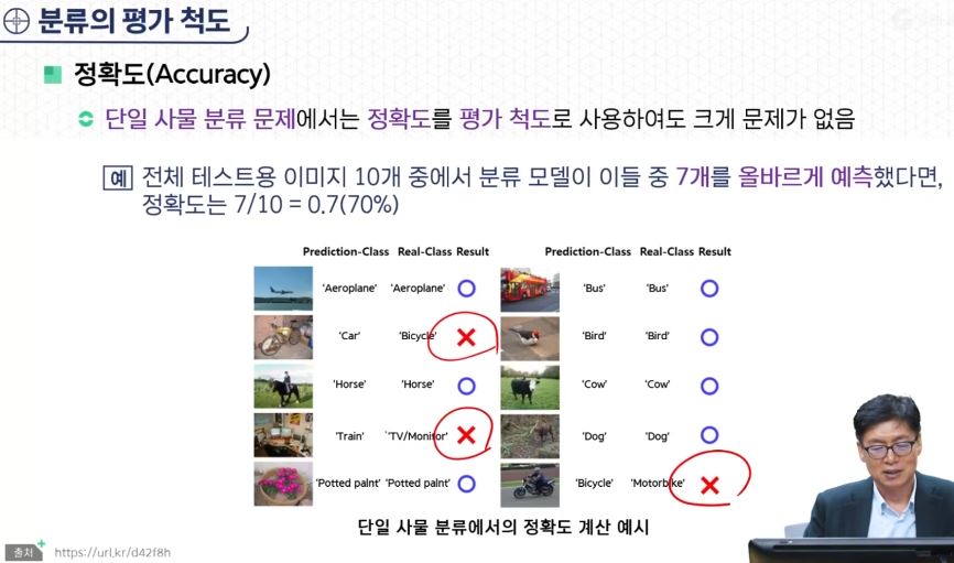 - 복수 사물 분류 문제에서는 정확도를 그대로 사용하기 곤란해지는 상황이 발생한다.