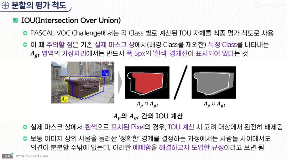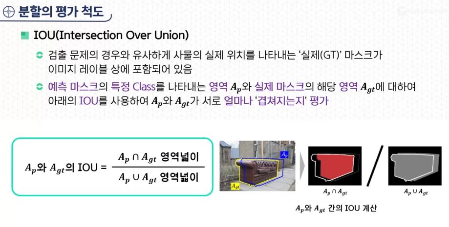 - 분할의 평가 척도도 IOU를 사용한다.