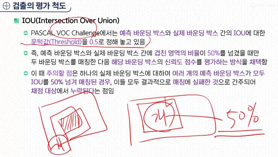 - 많이 겹칠수록 검출의 평가가 좋아진다.