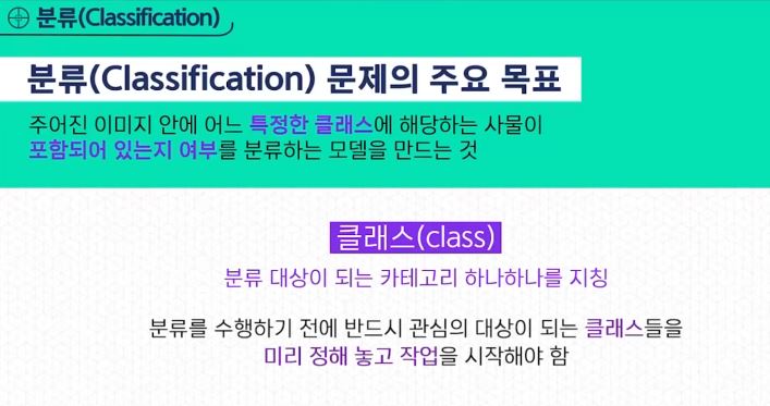 - 주어진 이미지 안에 어느 특정한 클래스에 해당하는 사물이 포함되어 있는지 여부를 분류하는 모델을 만드는 것