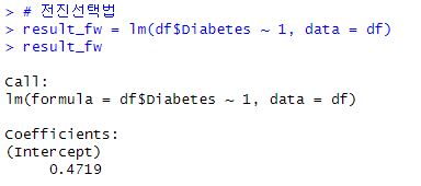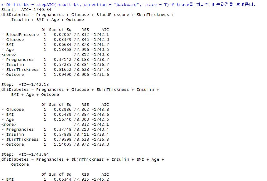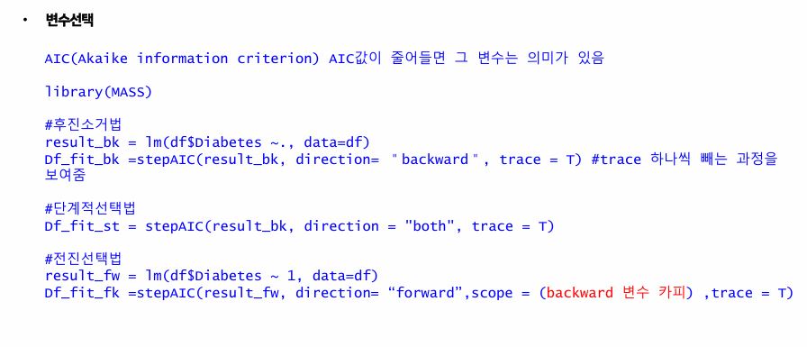 - AIC : AIC 값이 줄어들면 그 변수는 의미가 있다.