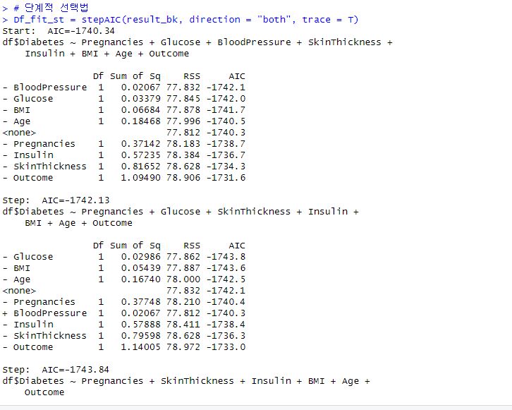 - AIC : AIC 값이 줄어들면 그 변수는 의미가 있다.