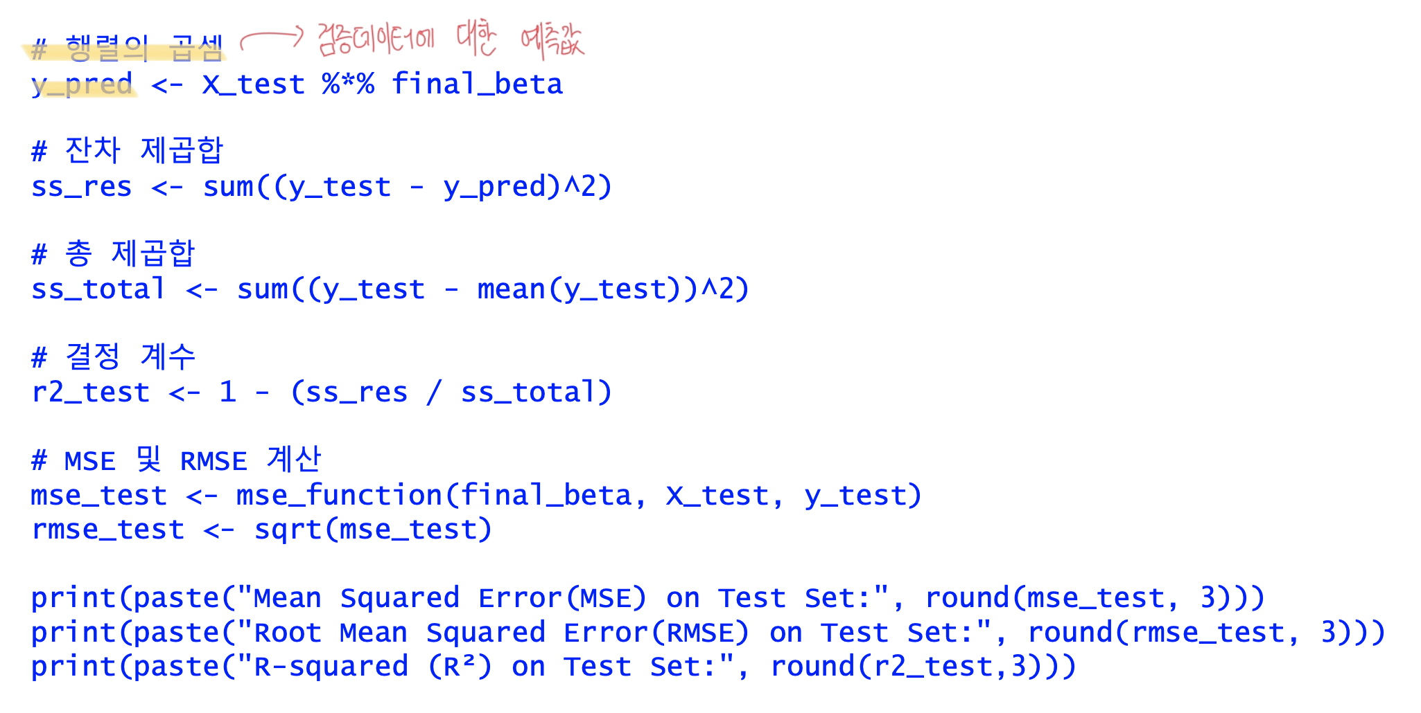 - 검정 : 예측의 정확도 → R-Squared 값