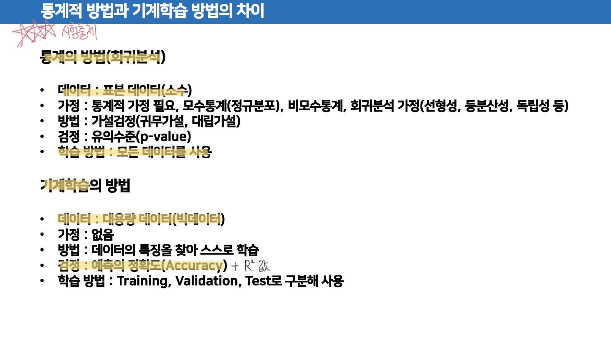 - 가정 : 통계적 가정 필요