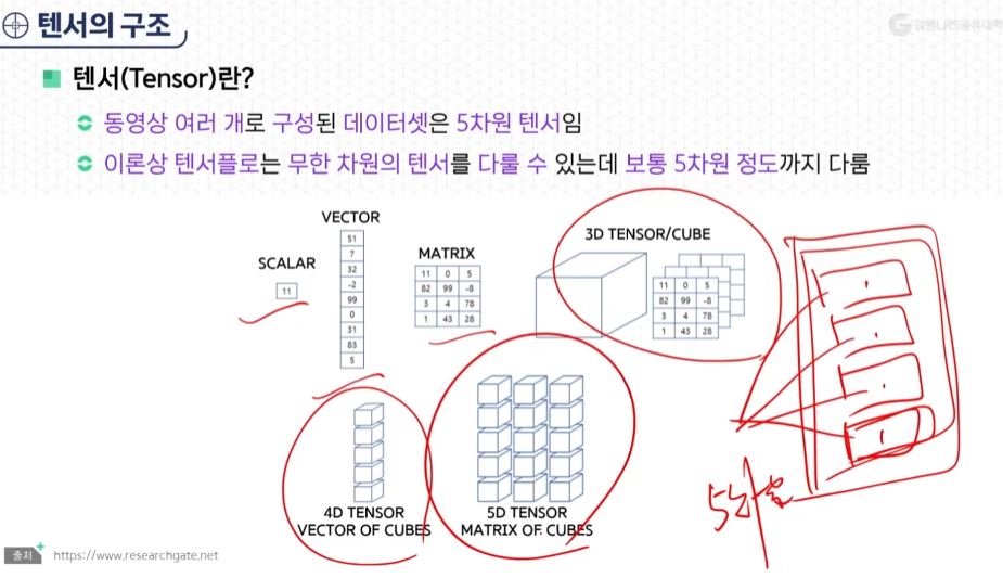 영상이 가득들어있는 외장하드디스크는 4차원이 여러 개 담겨있는 것이므로 5차원 (5차원의 텐서) 이라고 부른다.
