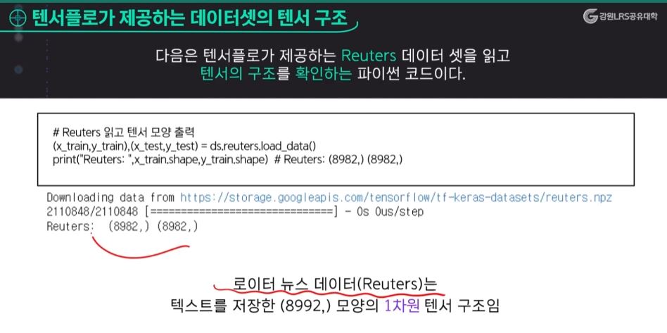 1차원 데이터셋 : 뉴스 데이터처럼 텍스트 데이터