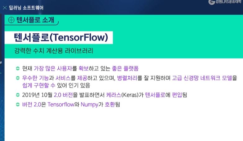 딥러닝 소프트웨어에 대해 알고 텐서플로의 개념에 대해 설명할 수 있다.