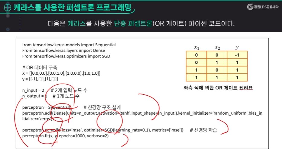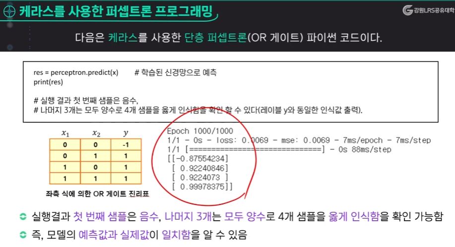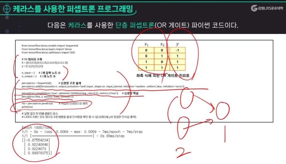 단층 퍼셉트론 예시)