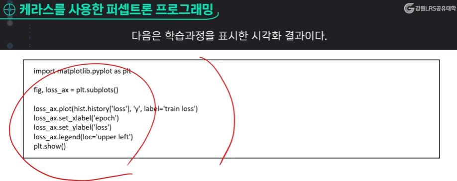 학습률이 높게되면 굉장히 큰 값을 반영하겠다는 것이고 학습률이 낮다고 이야기하는 것은 오차가 나오면 그 오차를 조금 더 작은 비율로 반영하겠다고 이해하면 된다. 이것이 옵티마이저이다. 손실함수를 사용할 때 알고리즘은 여기서 평균제곱오차 방법을 사용한다.