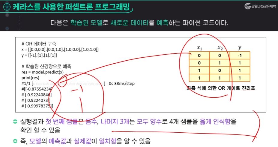 단층 퍼셉트론 예시)