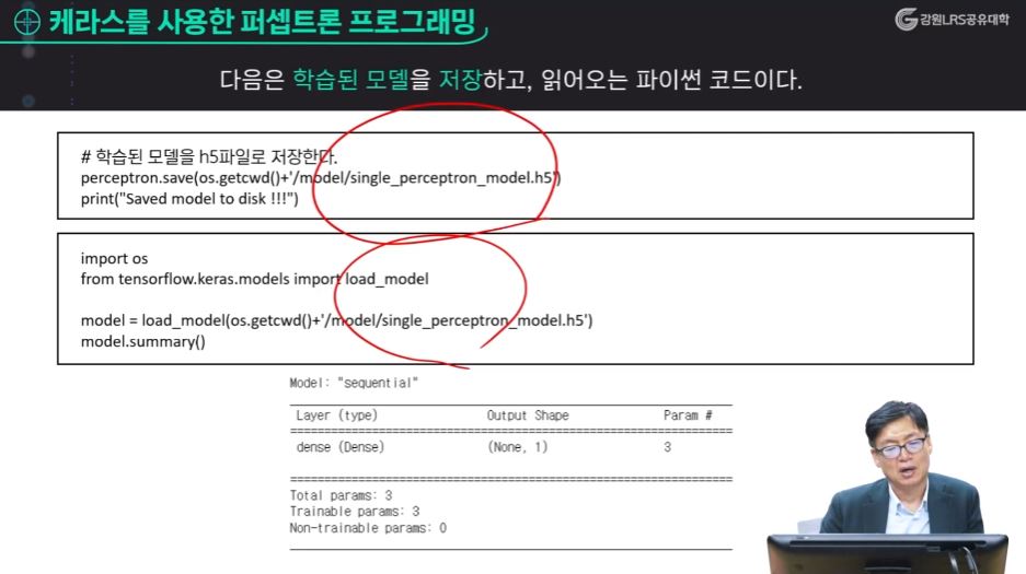 예측 값을 구한다는 얘기는, 지금까지 가지고 있는 이 가중치 값과 이 편향 값을 가중 합을 통해 그 결과를 만들어내고 이 가중 합을 통해서 활성화 함수를 태운 결과가 아웃풋 (return o)이 된다.