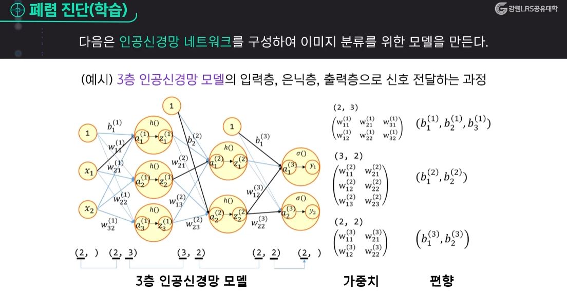 - 순전파를 통해서 모델이 추론을 하게 되고 추론한 결과가 예측과 실제값의 차이, 즉 오차를 줄여나가는 방향으로 역전파를 하면서 이 중간에 들어가 있는 매개변수 값들을 갱신하는 과정이 인공 신경망의 학습이라고 보면 된다.