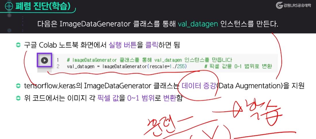 - 데이터 전처리는 이미지학습에 있어, ImageDataGenerator이라는 클래스를 통해 이루어진다.