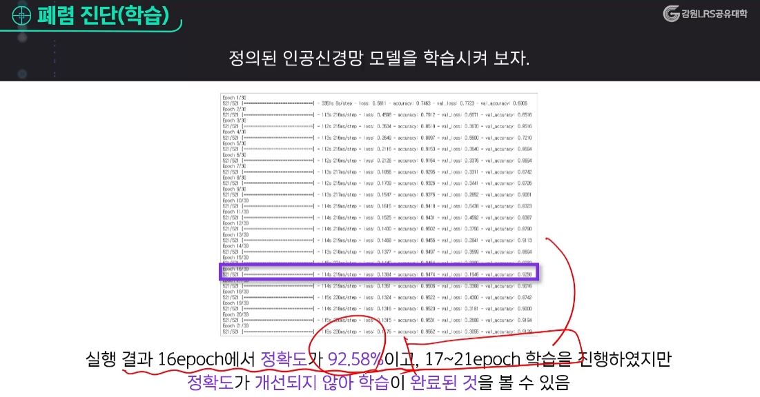 ▶ 손실값은 줄었고, 정확도가 높아졌다면 학습이 어느 정도 잘 진행이 되었다는 것을 의미한다.