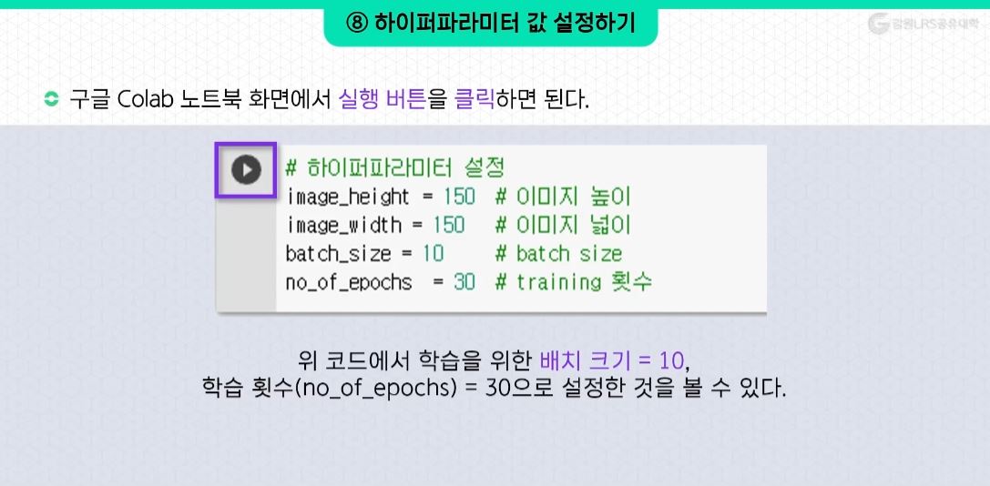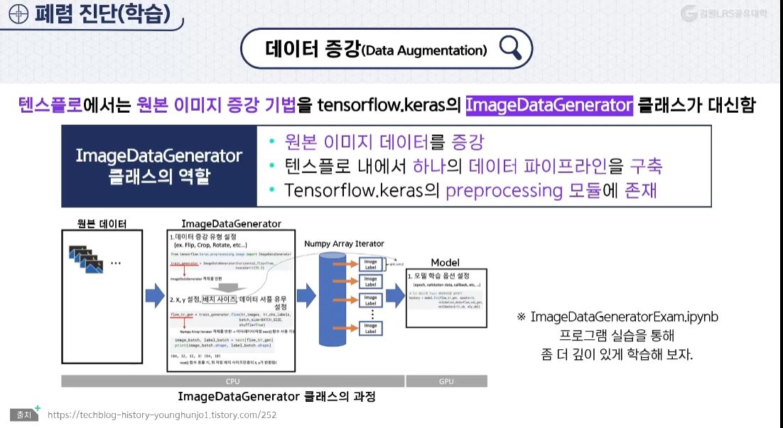 - 데이터 전처리는 이미지학습에 있어, ImageDataGenerator이라는 클래스를 통해 이루어진다.