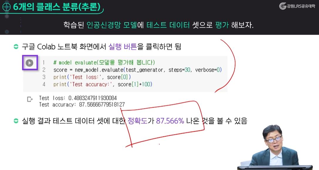구글 코랩을 활용한 6개의 클래스 분류 모델 추론을 따라할 수 있다.