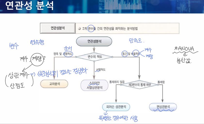 → 통제여부에 따라 → 통제가 있으면 "편상관분석", 통제가 없으면 "피어슨 상관분석" - 교차분석 : 명목 척도로 측정된 두 변수 간의 상호연관성을 알아보기 위한 분석