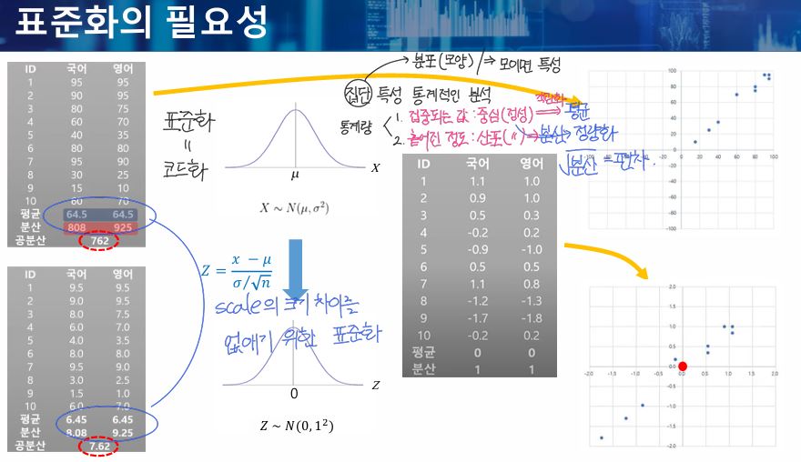 - 평균이 0, 분산이 1이 되어 데이터 분석 처리할 때 간편하다.