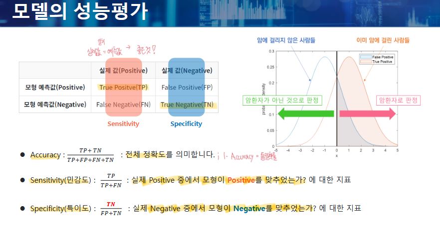 - 정확도, 민감도, 특이도에 의해 평가한다.