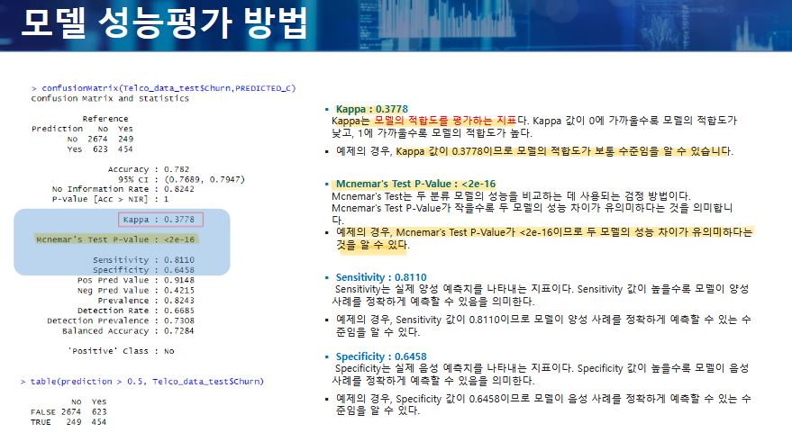 - Mcnemar's Test P-value: 두 분류 모델의 성능을 비교하는 데 사용되는 검정 방법이다.