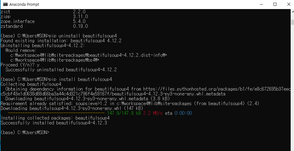 pip install / uninstall (라이브러리 이름) : 파이썬 라이브러리 설치 및 제거 가능