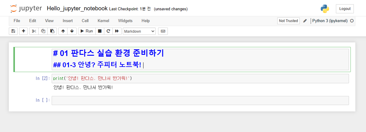 작업명 하단 제목 넣기 [코드 박스 클릭 후 Insert >> Insert Cell Above (Below) , Code >> Markdown , #을 넣고 제목추가]