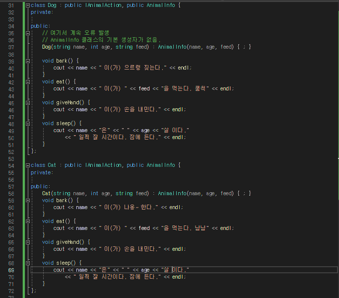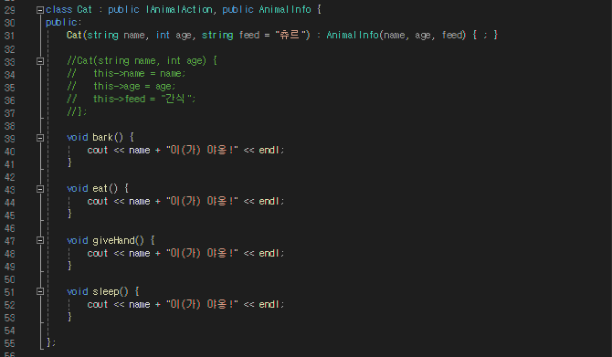 - 멤버 변수 string name, int age, string feed
