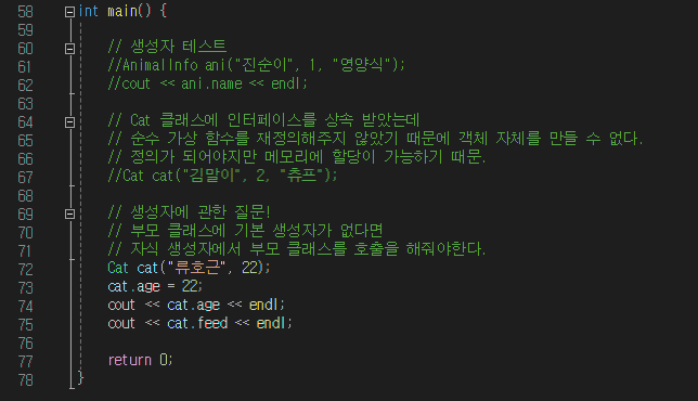재정의도 하고 생성자도 만들어보고 등등 메인 함수에서 충분히 테스트해보기