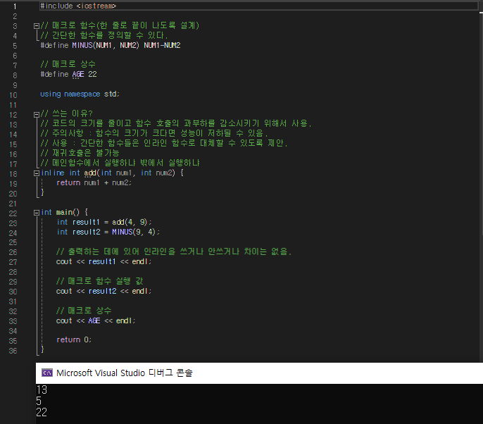 매크로 함수 : 간단한 함수를 한줄로 끝이 나도록 설계하며, 정의할 수 있다.