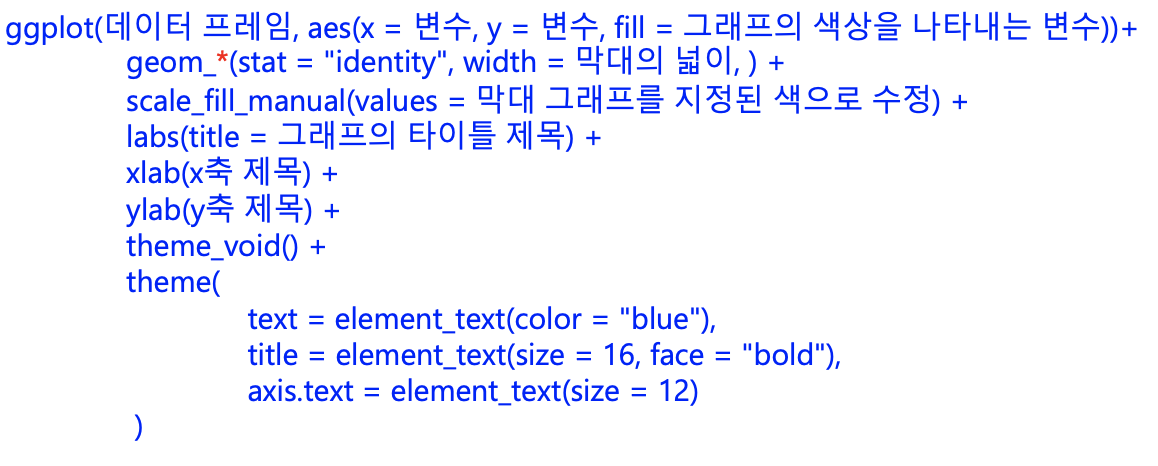 - 막대그래프(Bar Chart) : 표현 값에 비례하여 높이와 길이를 지닌 직사각형 막대로 범주형 데이터를 표현하는 그래프 (명목형)