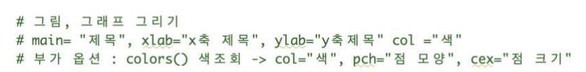 main = "wt(중량)-mpg(연비) 그래프", xlab = "wt(중량)", # x축 라벨