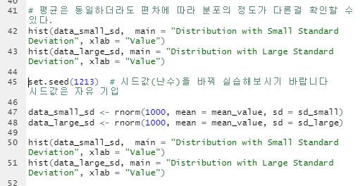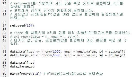 rnorm 을 사용하여 n개의 값을 임의 추출하여 정규분포를 작성한다.