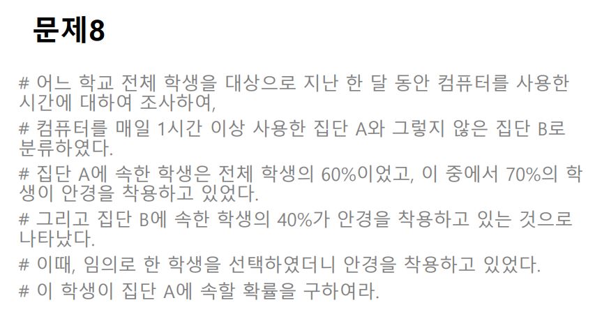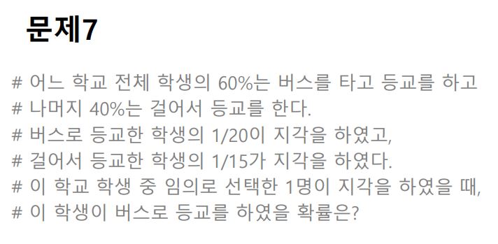 답 : ( P(B|A)*P(A) / (P(B|A) * P(A) + P(B|A x) * P(A x))