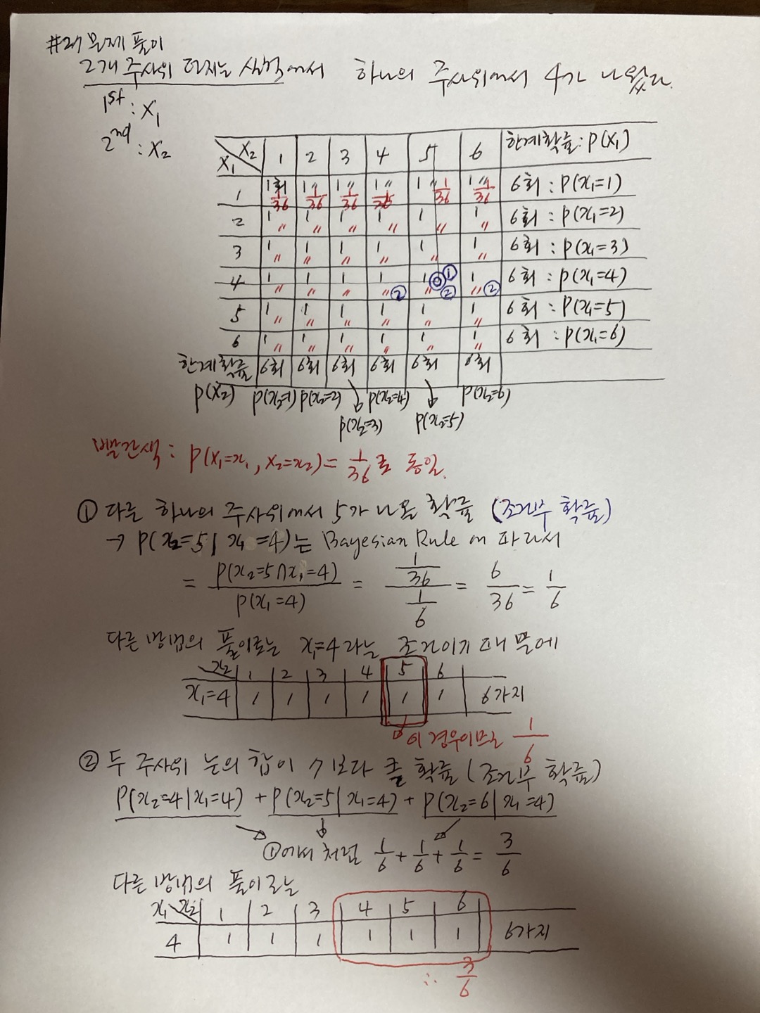 한계확률 : 변수가 2개인 상황에서 한 개만을 확률변수로 취급하는 것