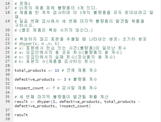 - 초기하 분포 : 비복원 추출에서의 성공의 분포