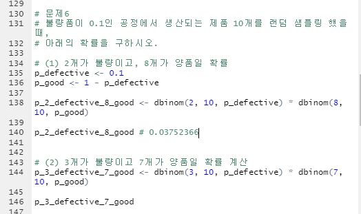 복원추출이 확인되면, 이항분포 (dbinom) 을 사용한다.