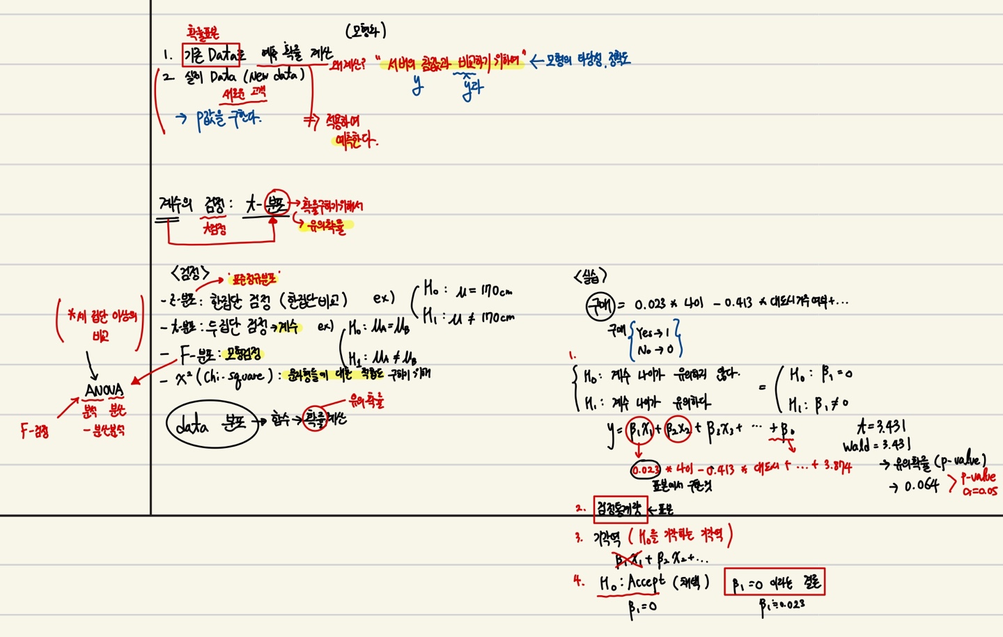 - F-분포 : 모형검정